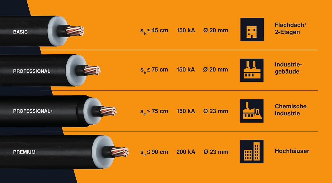 The high voltage-resistant, insulated isCon® conductor is the modern solution for planners and erectors of lightning protection systems, in order to maintain the necessary separation distances safely. With its standardised conductor cross-section, it fulfils the requirements of VDE 0185-561-2 (IEC/EN 62561-2). Numerous lightning current tests according to VDE 0185-561-1 (IEC/ EN 62561-1) and IEC TS 62561-8 with up to 200 kA (10/350) guarantee use in all lightning protection classes.