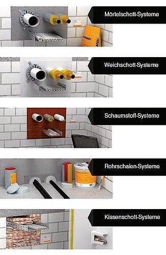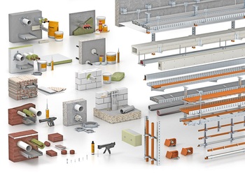 Firewalls should ensure that a fire cannot pass to neighbouring buildings or building sections. This creates so-called fire sections. The construction design of these firewalls (materials, fire resistance classes, stress values) is regulated by the building regulations and standards. Electrical cables and pipes may only be run through walls and ceilings at the ends of rooms when there is a guarantee that they do not present an opportunity for fire and smoke to spread. Insulation systems reliably seal the ceiling and wall penetrations required for installations against fire and smoke.
