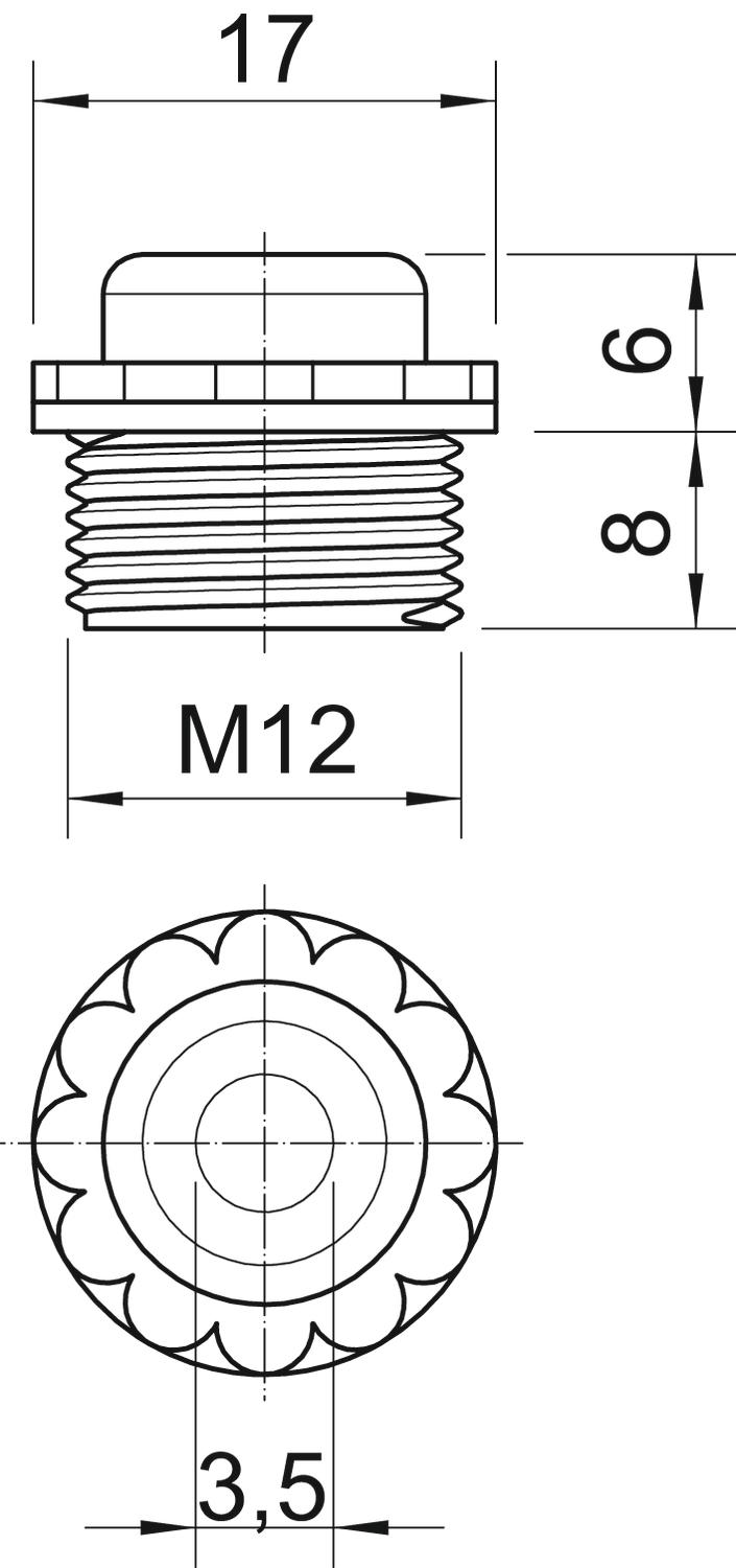 CO2 Footprint (GWP) Cradle-to-Gate 0,0022 kg CO2e / 1 Piece Colour Light grey; RAL 7035 Dimension M12 Dimension D 3,5 mm Dimension E 17 mm Dimension L1 8 mm Dimension L2 6 mm Halogen-free yes Material Polyethylene Protection rating IP54 Size M12 Thread length 8 mm WAF 13 - All types