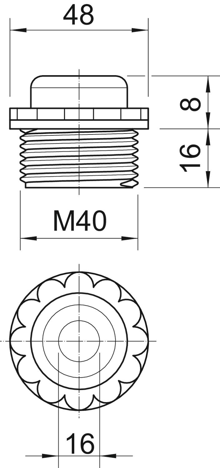 CO2 Footprint (GWP) Cradle-to-Gate 0,0343 kg CO2e / 1 Piece Colour Light grey; RAL 7035 Dimension M40 Dimension D 16 mm Dimension E 48 mm Dimension L1 16 mm Dimension L2 8 mm Halogen-free yes Material Polyethylene Protection rating IP54 Size M40 Thread length 16 mm WAF 44 - All types