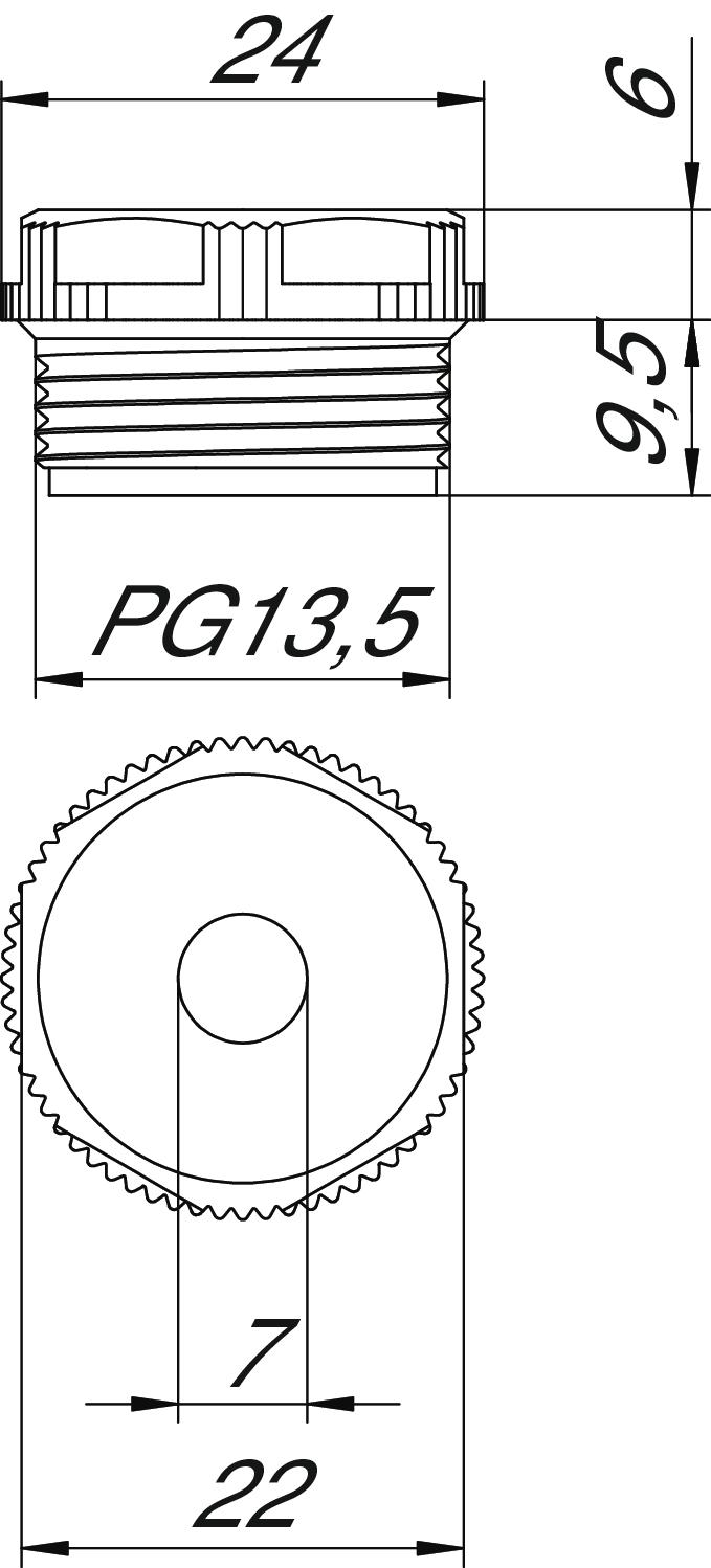 CO2 Footprint (GWP) Cradle-to-Gate 0,0057 kg CO2e / 1 Piece Colour Light grey; RAL 7035 Dimension PG13,5 Dimension D 7 mm Dimension E 24 mm Dimension L1 9,5 mm Dimension L2 6 mm Halogen-free yes Material Polyethylene Protection rating IP54 Size Pg 13,5 Thread length 9,5 mm WAF 22 - All types