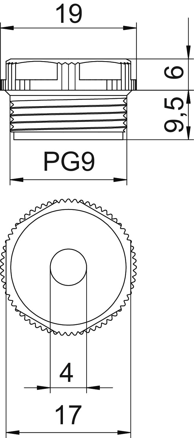 CO2 Footprint (GWP) Cradle-to-Gate 0,0054 kg CO2e / 1 Piece Colour Light grey; RAL 7035 Dimension PG9 Dimension D 4 mm Dimension E 19 mm Dimension L1 9,5 mm Dimension L2 6 mm Halogen-free yes Material Polyethylene Protection rating IP54 Size Pg 9 Thread length 9,5 mm WAF 17 - All types