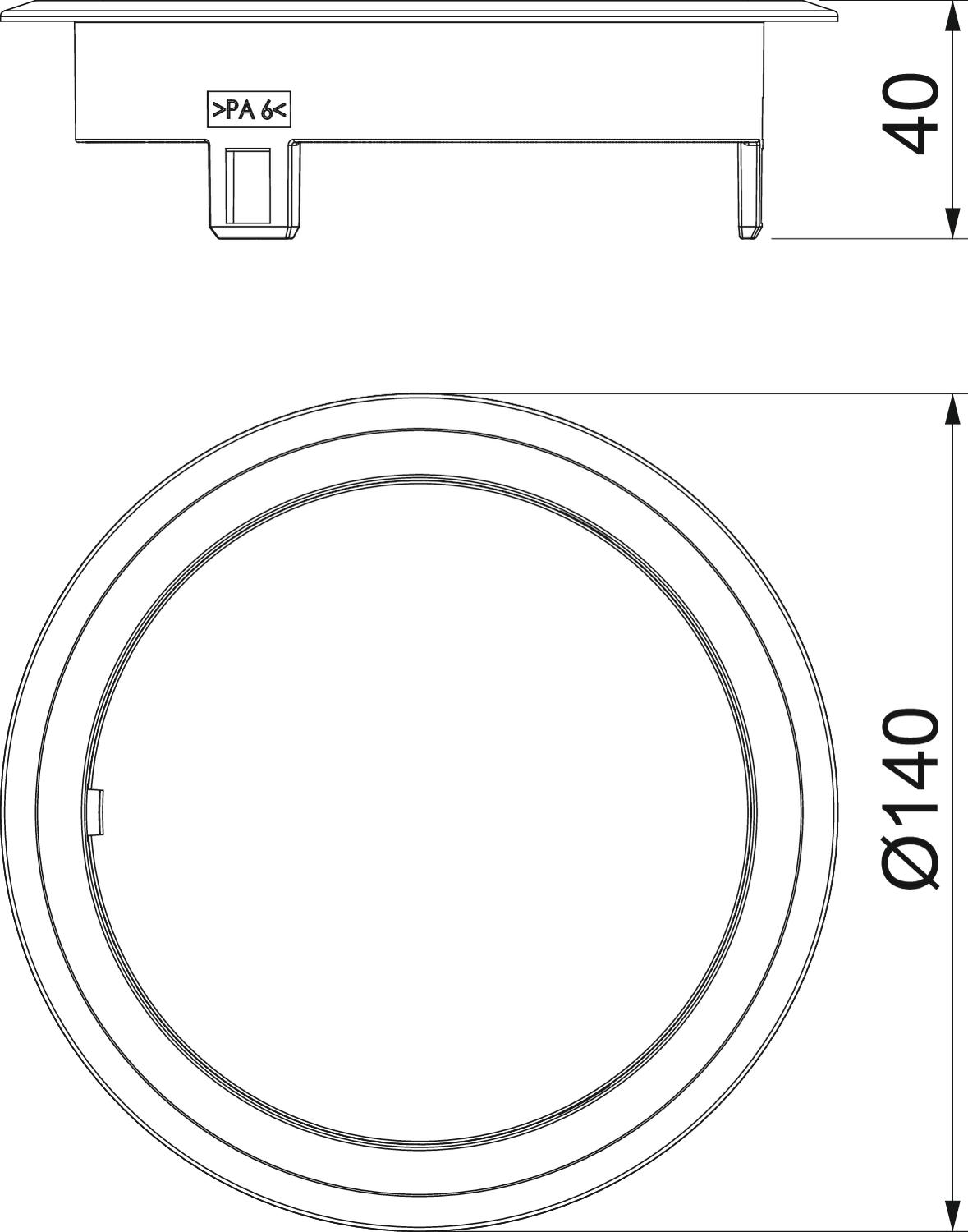 Approvals VDE Cable outlet version No cable outlet CO2 Footprint (GWP) Cradle-to-Gate 0,4501 kg CO2e / 1 Piece Colour Iron grey; RAL 7011 Dimension 140x140x40 External diameter 140 mm Floor care Dry Floor covering protection frame yes Material Polyamide Opening mechanism Tool Protection rating (IP) when unused IP40 Protection rating IK code IK10 Standard EN 50085-2-2 Suitable for cavity floor installation yes Suitable for raised floor installation yes Suitable for underfloor ducts no Suitable for wet care no Version for Round Vertical load, small area to 500 N With floor covering recess no - All types