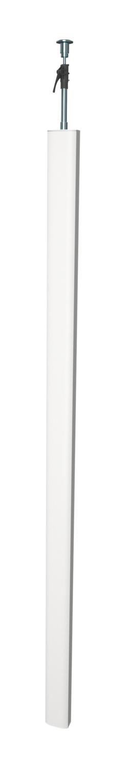 The clamping device attached at the top of the ISS service pole can be variably adjusted between 315 and 480 mm. Possible colour options are aluminium anodised or pure white. The pole is based on a slender, oval aluminium profile. There are two 45 mm system openings on opposite sides for direct installation of Module 45® devices.