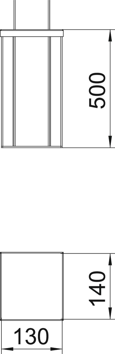 Adjustable no Cable entry Bottom Ceiling mounting no Changes according to location no CO2 Footprint (GWP) Cradle-to-Gate 38,6183 kg CO2e / 1 Piece Colour aluminium Continuous profile yes Cover width 76,5 mm Dimension 500x130x140 Fastening type Bolts Floor mounting yes Halogen-free yes Height 140 mm Length 500 mm Material Aluminium Number of compartments 2 St. Number of usable covers 2 Pole height, min. 500 mm Pole shape Rectangular Pre-wired no Surface Anodised Version for Double-sided Width 130 mm - All types