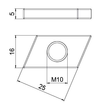 CO2 Footprint (GWP) Cradle-to-Gate 0,0824 kg CO2e / 1 Piece Dimension M10 Dimension B 16,5 mm Dimension H 6 mm Dimension L 26 mm Height 6 mm Length 26 mm Material Stainless steel Surface Bright, treated Thread M10 Thread metric 10 Width 16,5 mm With spring no - All types