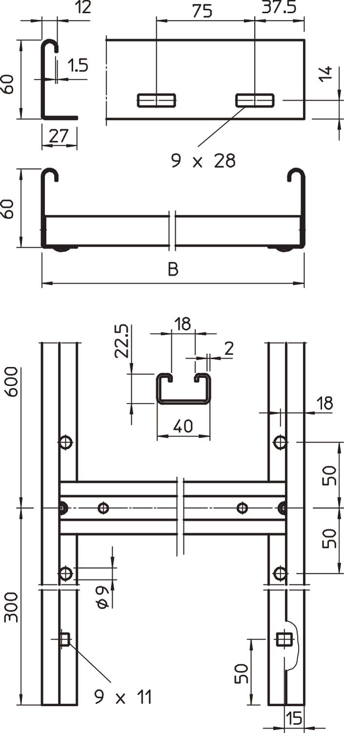 CO2 Footprint (GWP) Cradle-to-Gate 6,4451 kg CO2e / 1 Meter Colour zinc Dimension 60x200x6000 Dimension B 200 mm Height 60 mm Length 6000 mm Maintain electrical functions no Material Steel Rail thickness 1,5 mm Rung distance 600 mm Rung slot dimension 18,00 Rustproof steel, pickled no Side perforation yes Surface Hot-dip galvanised Usable cross-section 76 cm² Version of the rungs Profile perforated Width 200 mm - All types