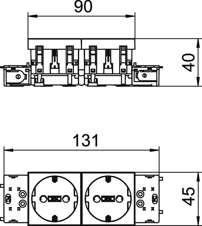 Closable no CO2 Footprint (GWP) Cradle-to-Gate 0,5585 kg CO2e / 1 Piece Coding no Colour Black-grey; RAL 7021 Connection type Screwless terminal Cover Central plate Depth 42 mm Dimension 250V, 10/16A Ejection mechanism no Error current protection no Fastening type Lock For more difficult conditions (according to VDE) no Halogen-free yes Height 90 mm Hinged cover no increased touch protection yes Insulated installation no Labelling panel no Material Polycarbonate Mounting type Device installation duct Nominal current 16 A Nominal voltage 250 V Number of poles 2 Number of units 2 Operating temperature, max. 40 °C Operating temperature, min. -5 °C Power reserve no Printed label/coding Without printing Protection rating Other Rotated central insert no Socket angle 0° Socket version Protective contact Special power supply Without special power supply Surface version Matt Surge protection no Transparent no Version for Double 0° Warning light no Width 131 mm With fine-wire fuse no With functional lighting no With on/off switch no With orientation lighting no - All types