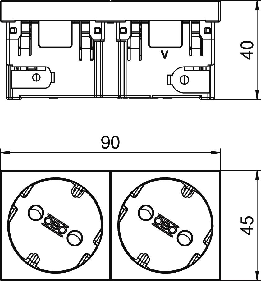 Product descriptionProtective contact socket double 33°, with increased touch protection, with screwless terminals, 2-pin, 16 A, 250 V~, with connection terminals to IEC 60884-1.