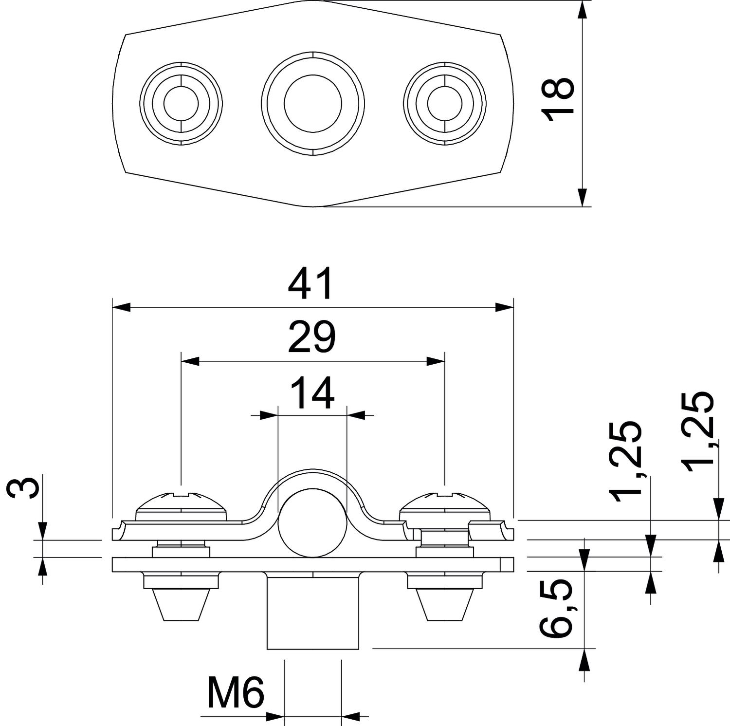 Clamping range D, max. 14 mm Clamping range D, min. 12 mm CO2 Footprint (GWP) Cradle-to-Gate 0,1725 kg CO2e / 1 Piece Dimension 12-14mm Dimension A 41 mm Dimension B 29 mm Dimension b 18 mm Dimension D 14 mm Dimension d max. 14 mm Dimension d min. 12 mm Dimension H1 12 mm Dimension t1 (mm) 1,25 Dimension t2 (mm) 1,25 Dimension x 3 mm Distance to the wall yes For diameter 12 - 14 Halogen-free yes Maintain electrical functions yes Material Stainless steel 1.4301 Material thickness 1,25 mm Number of cables/pipes 1 Plastic-covered no UV-resistant yes Version for Closed - All types