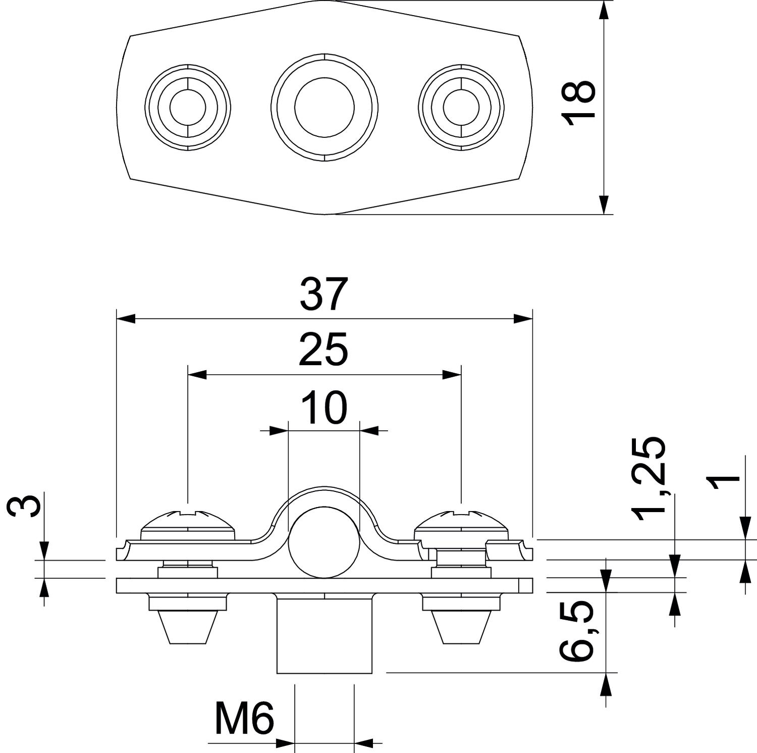 Clamping range D, max. 10 mm Clamping range D, min. 8 mm CO2 Footprint (GWP) Cradle-to-Gate 0,1493 kg CO2e / 1 Piece Dimension 8-10mm Dimension A 37 mm Dimension b 18 mm Dimension B 25 mm Dimension D 10 mm Dimension d max. 10 mm Dimension d min. 8 mm Dimension H1 12 mm Dimension t1 (mm) 1 Dimension t2 (mm) 1,25 Dimension x 3 mm Distance to the wall yes For diameter 8 - 10 Halogen-free yes Maintain electrical functions yes Material Stainless steel 1.4301 Material thickness 1,25 mm Number of cables/pipes 1 Plastic-covered no UV-resistant yes Version for Closed - All types