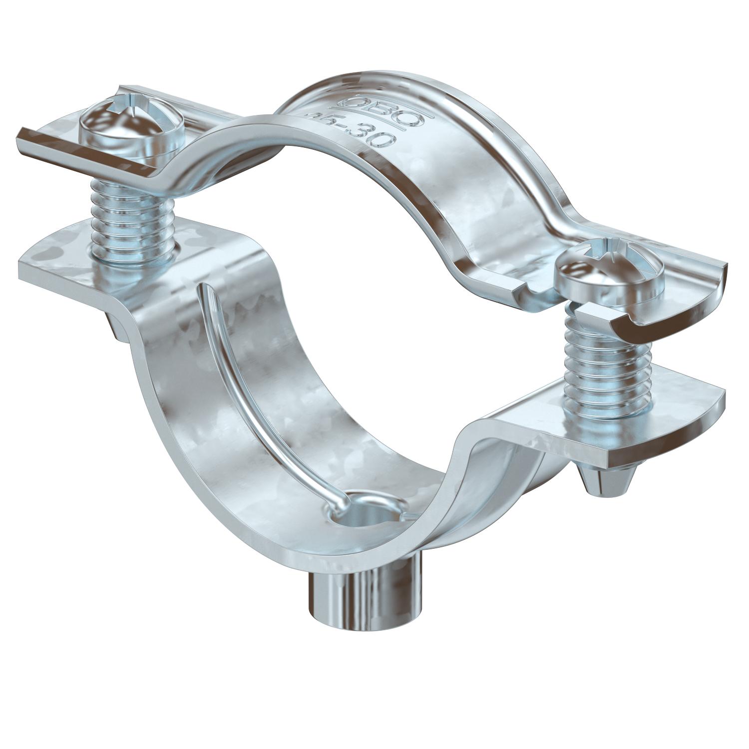 Clamping range D, max. 30 mm Clamping range D, min. 25 mm CO2 Footprint (GWP) Cradle-to-Gate 0,0982 kg CO2e / 1 Piece Dimension 25-30mm Dimension A 59 mm Dimension B 45 mm Dimension b 18 mm Dimension D 30 mm Dimension d max. 30 mm Dimension d min. 25 mm Dimension H1 6,5 mm Dimension t1 (mm) 1,5 Dimension t2 (mm) 1,5 Dimension x 7,5 mm Distance to the wall yes Fastening type Threaded connection For diameter 25 - 30 Halogen-free yes Maintain electrical functions yes Material Steel Material thickness 1,5 mm Number of cables/pipes 1 Plastic-covered no Surface Hot-dip galvanised UV-resistant yes Version for Closed - All types