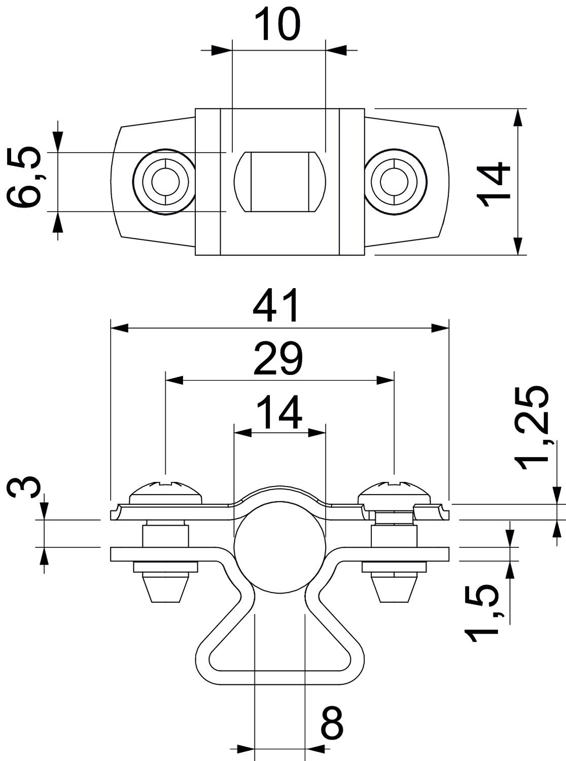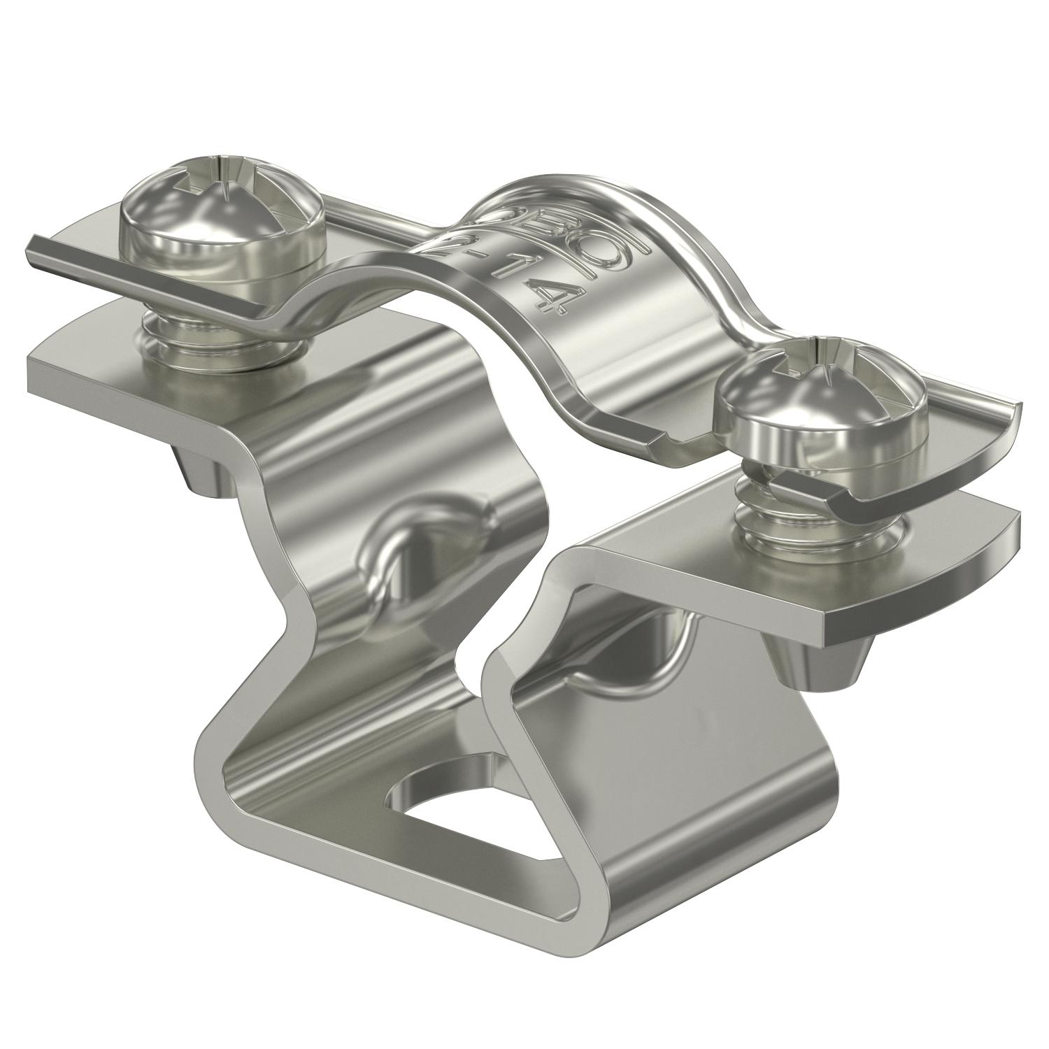 Clamping range D, max. 14 mm Clamping range D, min. 12 mm CO2 Footprint (GWP) Cradle-to-Gate 0,1598 kg CO2e / 1 Piece Dimension 12-14mm Dimension A 41 mm Dimension B 29 mm Dimension b 14 mm Dimension d max. 14 mm Dimension d min. 12 mm Dimension L 10 mm Dimension s 8 mm Dimension t1 (mm) 1,25 Dimension t2 (mm) 1,5 Dimension x 3 mm Distance to the wall yes For diameter 12 - 14 Halogen-free yes Maintain electrical functions yes Material Stainless steel 1.4301 Material thickness 1,5 mm Number of cables/pipes 1 Plastic-covered no UV-resistant yes Version for Closed - All types