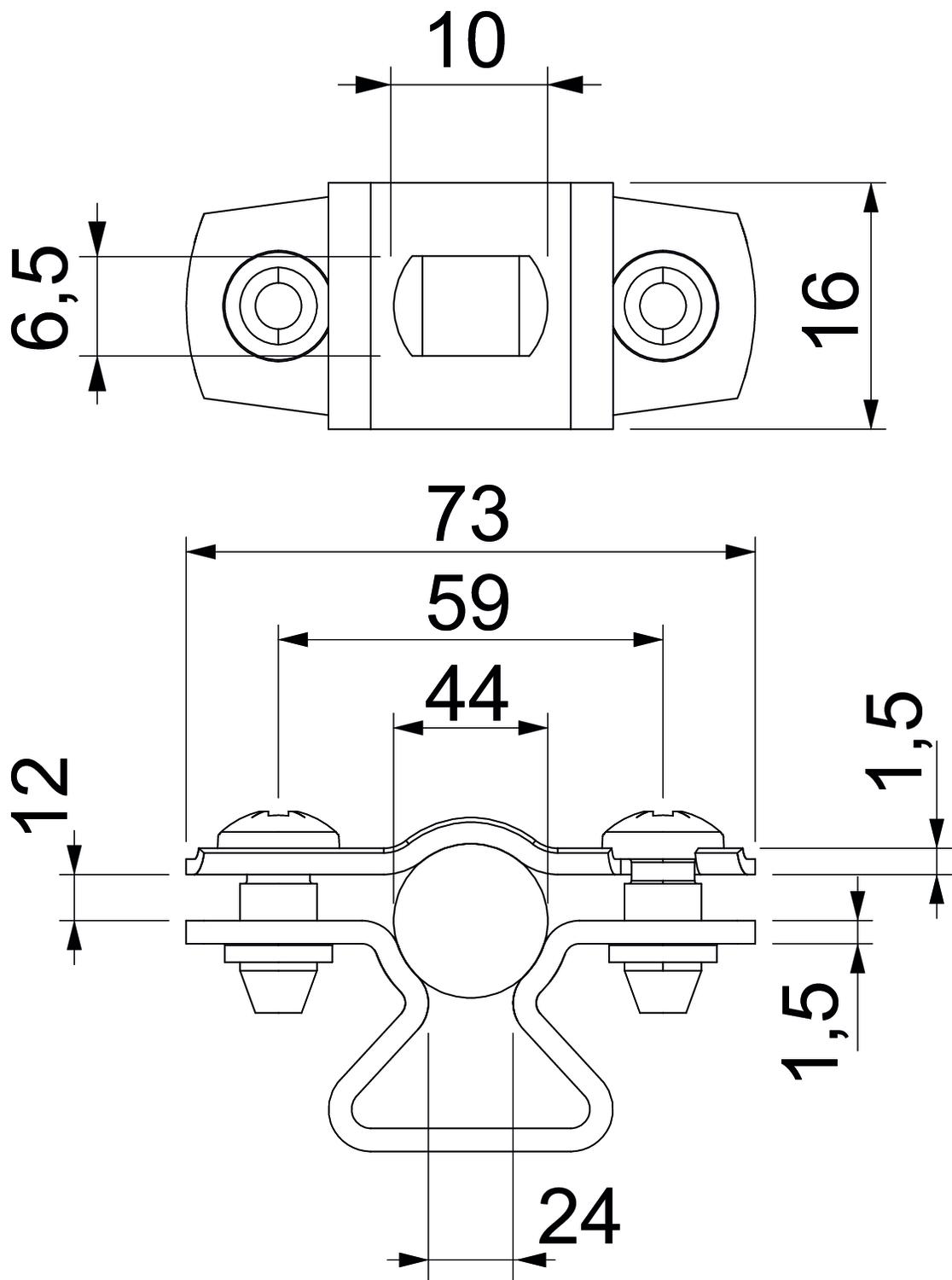 Clamping range D, max. 44 mm Clamping range D, min. 36 mm CO2 Footprint (GWP) Cradle-to-Gate 0,1201 kg CO2e / 1 Piece Dimension 36-44mm Dimension A 73 mm Dimension B 59 mm Dimension b 16 mm Dimension D 44 mm Dimension d max. 44 mm Dimension d min. 36 mm Dimension L 10 mm Dimension s 24 mm Dimension t1 (mm) 1,5 Dimension t2 (mm) 1,5 Dimension x 12 mm Distance to the wall yes Fastening type Screw hole For diameter 36 - 44 Halogen-free yes Maintain electrical functions yes Material Steel Material thickness 1,5 mm Number of cables/pipes 1 Plastic-covered no Surface Hot-dip galvanised UV-resistant yes Version for Closed - All types