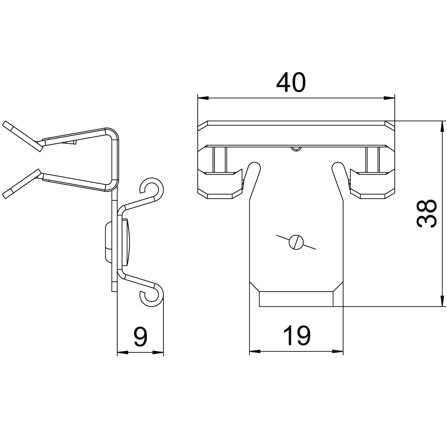 Breaking load 0,22 kN Colour zinc Connection type/component Pipe/cable Dimension 4-10mm Dimension L 38 mm Dimension W 40 mm Fastening type Clamp Flange thickness F max. 10 mm Flange thickness F min. 4 mm Height 32 mm Hinge, adjustable no Hinged no Length 38 mm Material Steel Surface Zinc slat Width 40 mm - All types
