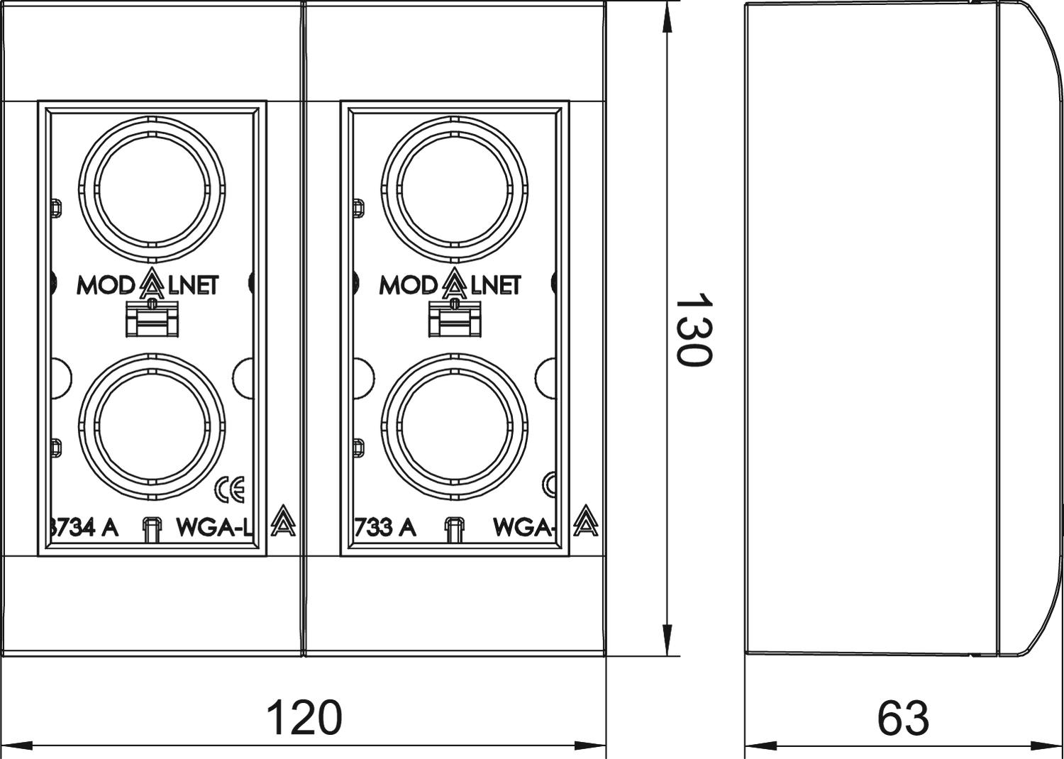 Product descriptionBasic configuration consisting of two housing bases (right and left side) with two cover frames to accept Modul 45 accessories of 2x module width = 90 mm.