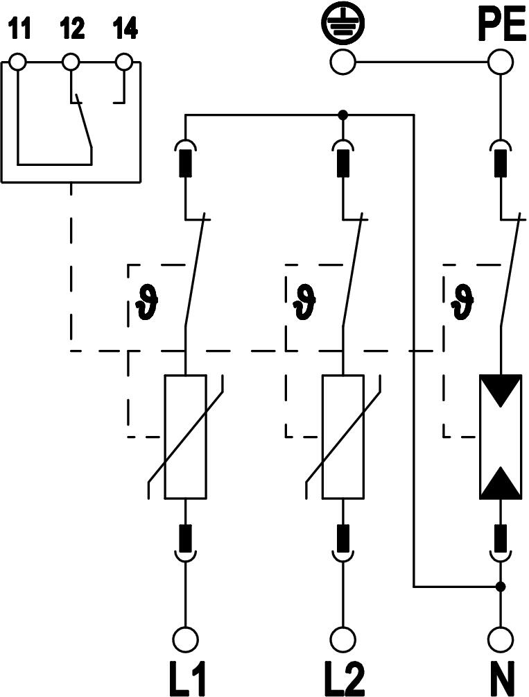 • Discharge capacity to 40 kA (8/20) per pole through high-performance varistors