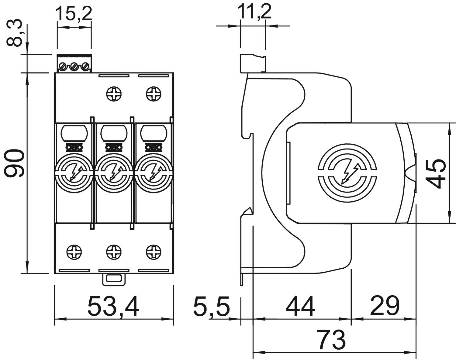 • Discharge capacity to 40 kA (8/20) per pole through high-performance varistors