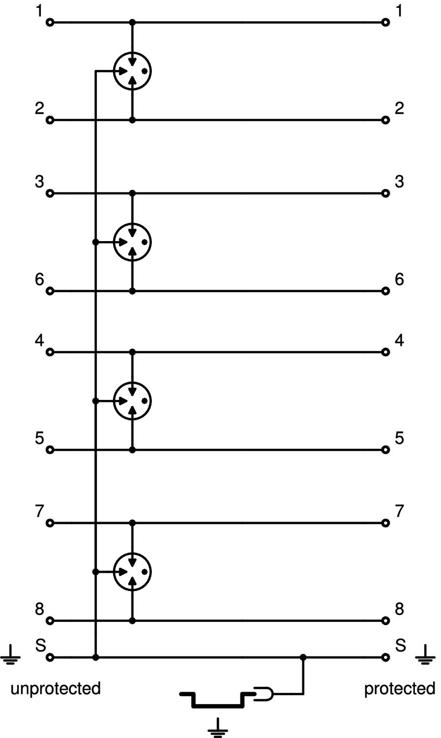 Channel performance Ansi/EA CAT 6 Channel performance ISO/IEC Class E CO2 Footprint (GWP) Cradle-to-Gate 1,4744 kg CO2e / 1 Piece Colour Silver grey; RAL 7001 Dimension 65V Earthing via: Connection cable / DIN rail Explosion-tested version no Impulse durability wire-earth C2: 3 kV / 1,5 kA (8/20µs) Impulse durability wire-wire C2: 3 kV / 1,5 kA (8/20µs) Insertion loss ≤3 dB Kategorie Type 1 / D1 Lightning protection zone LPZ 0→1 Material Aluminium Maximum continuous voltage AC 46 V Maximum continuous voltage DC 65 V Number of poles 8 Permitted temperature range, max. 80 °C Permitted temperature range, min. -40 °C Plug-in system RJ45 8(8) Protection level wire-earth <900 V Protection level wire-wire <1100 V Protection rating IP20 Screening Direct Shielding connection available yes SPD to IEC 61643-21 Class I / D1 Telecommunications contact no Testing standard IEC 61643-21 Total discharge current (10/350) 2,5 kA Total discharge current (8/20) 10 kA Version for Basic protection, 8 wires + shield - All types