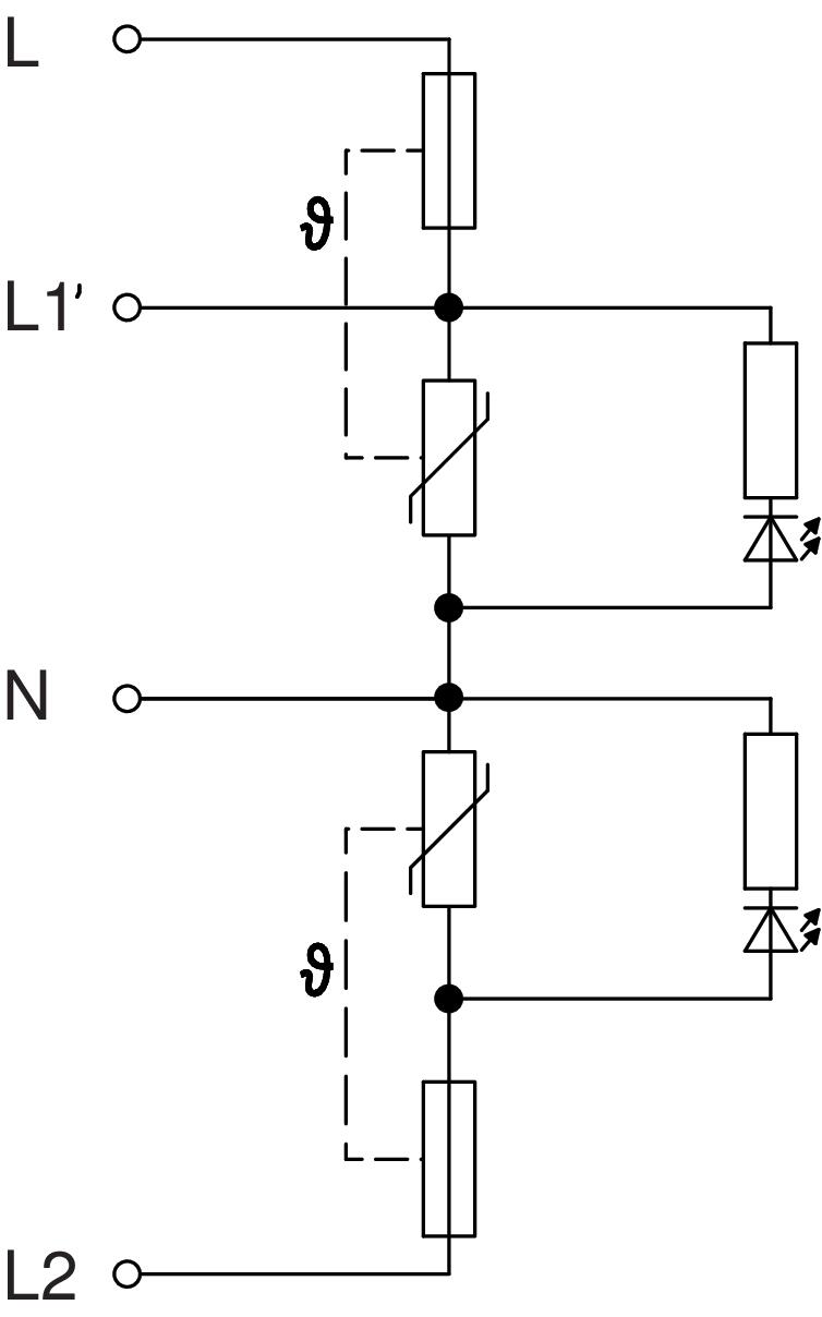 • Protective circuit with a maximum arresting capacity of 10 kA