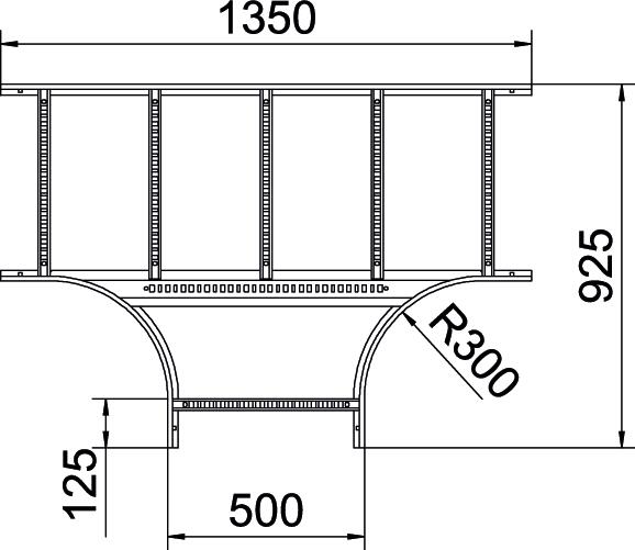 Product descriptionT piece, horizontal, with welded rung for all cable ladder types of 60 mm side height.
