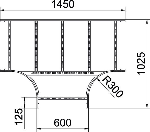 Product descriptionT piece, horizontal, with welded rung for all cable ladder types of 60 mm side height.