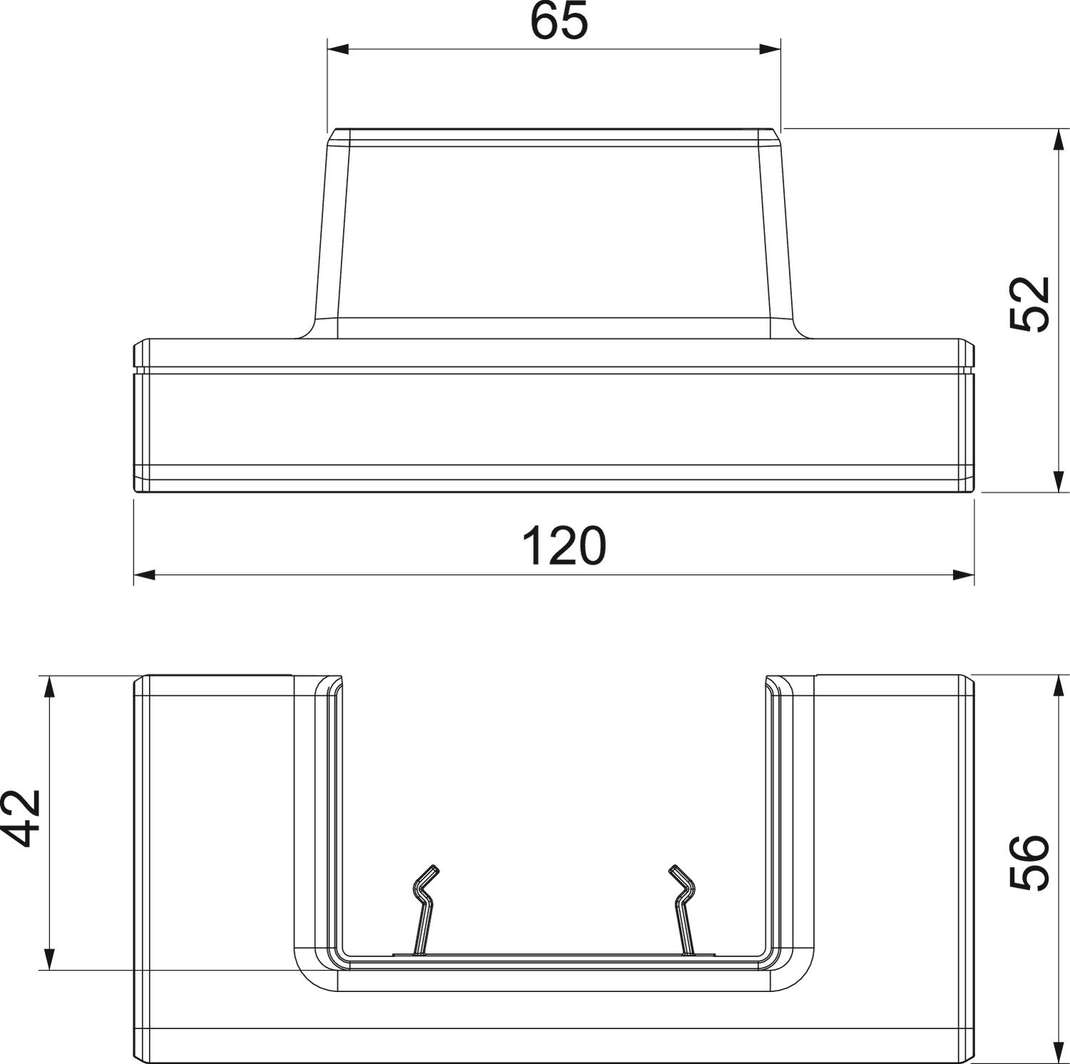 Antibacterial treatment no Cable retaining clip no CO2 Footprint (GWP) Cradle-to-Gate 0,1863 kg CO2e / 1 Piece Colour aluminium Cover mounting type Cross-over Dimension 120x52x56 Duct connector no for duct width 130 mm for trunking height 53 mm Halogen-free yes Height 55,5 mm Length 120 mm Material Polycarbonate/Acrylnitrile-butadiene-styrene Mounting perforation in base no Permitted temperature range, max. 60 °C Permitted temperature range, min. -15 °C Protection rating IP40 Protection rating IK code IK08 Protective film no Symmetrical no Version for Hood fitting Width 52 mm Width of the branch 60 mm - All types