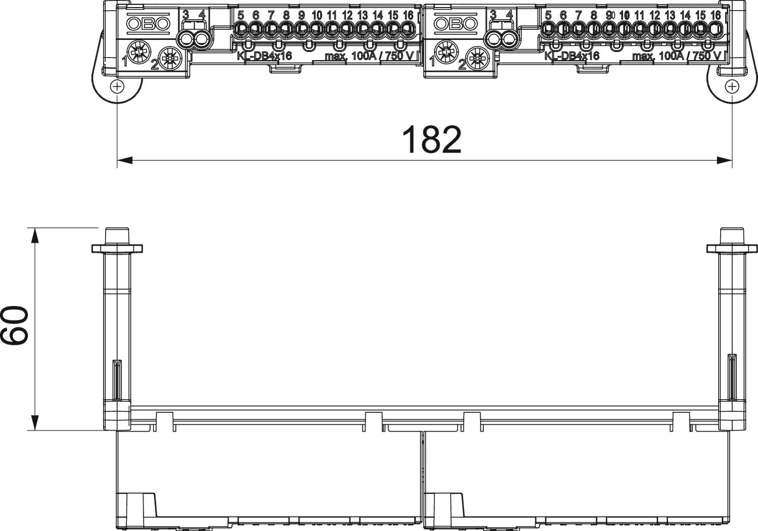 Mounting instructions; cover strip; hat rail with corresponding support and fastening material; one protective conductor terminal and one neutral conductor terminal each with two 16/25 mm² screw terminals and 2x 4 mm² and 12x 2.5 mm² screwless terminals