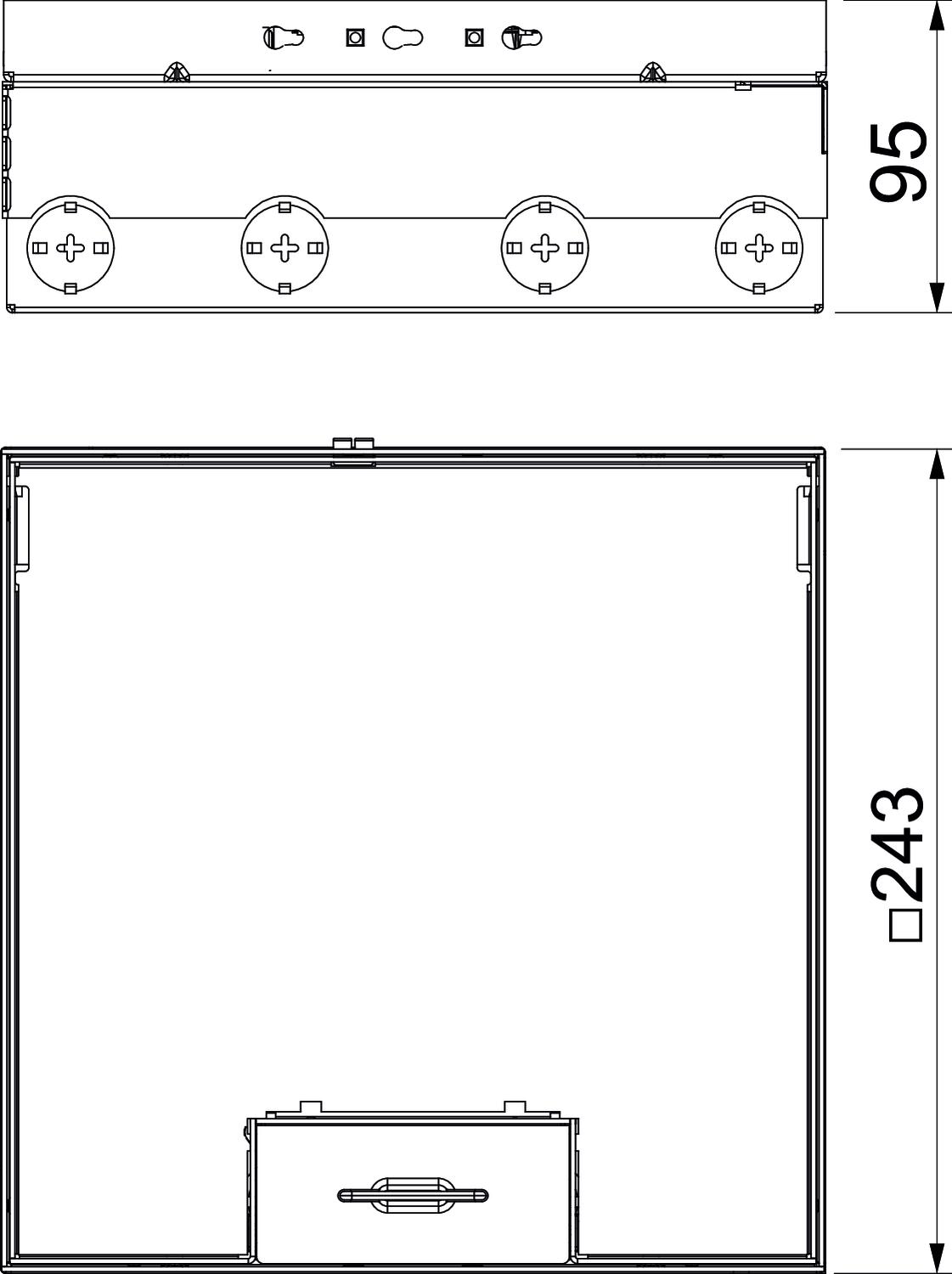 Product descriptionSquare floor box for use in dry-cleaned cavity and screed floors in indoor areas. Installation housing with pre-marked insertion openings for pipes (M25). With three UT4 universal supports and two double sockets. Cover adjustable to top edge of floor covering using four height-adjustment supports. The minimum installation depth is 95 mm, the height-adjustment range + 30 mm.