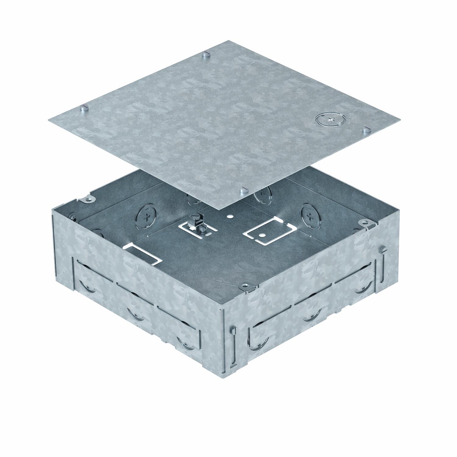 Product descriptionSquare installation housing for one GES4-2 service unit for outlet in screed floors for indoor use. With pre-marked insertion openings for pipelines (M25) on all four sides.