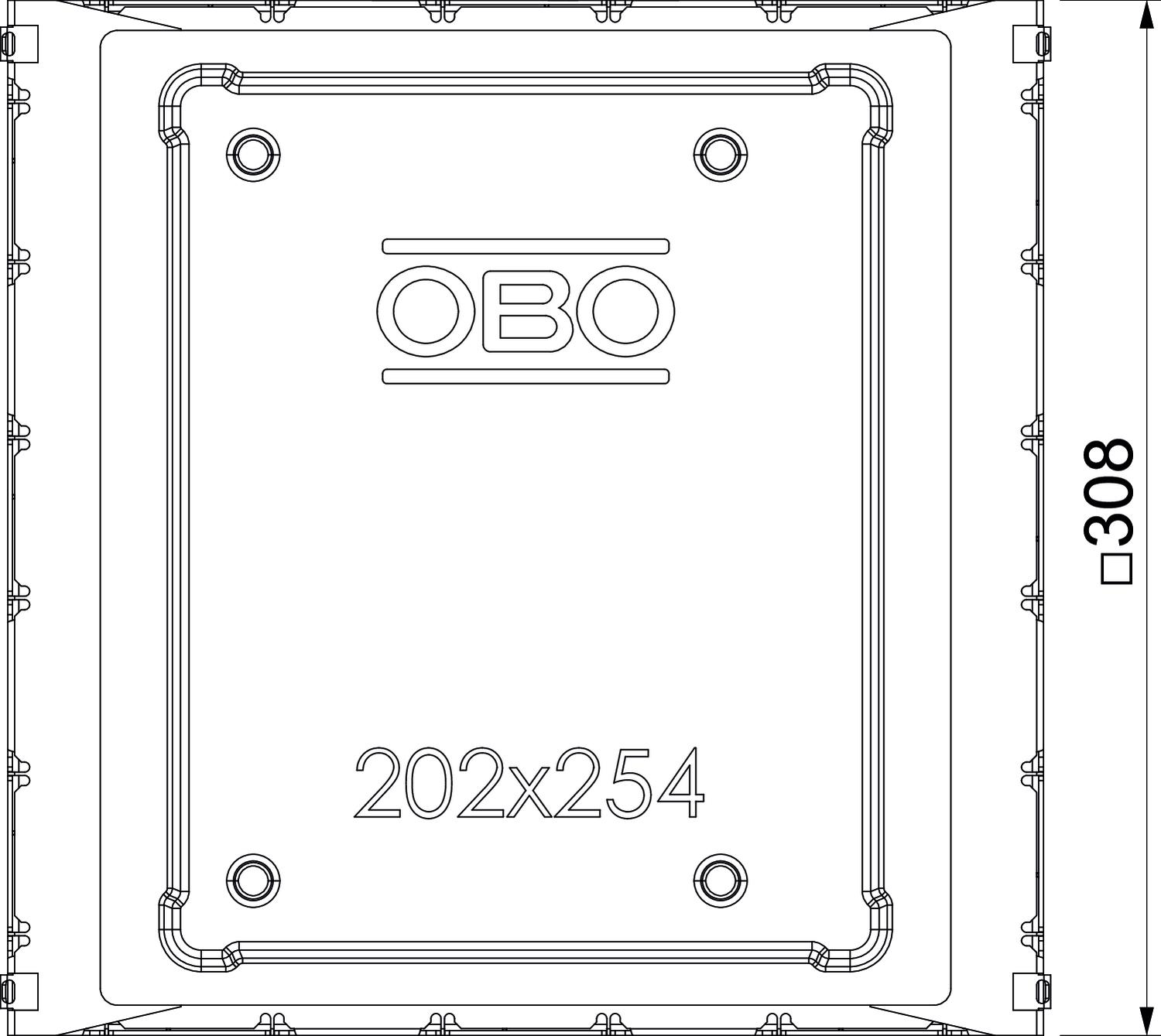 Product descriptionUnderfloor outlet box with fixed, unchangeable 202 x 254 mm installation opening for an installation unit of nominal size 6. The mounting opening is created using the screed protection cover contained in the scope of supply. The underfloor box possesses installation openings for three single-compartment PVC ducts of nominal size 60 x 25 and 90 x 35 on all four sides. The box is principally suited for use in floor structures in cement screed with a structure height of up to 90 mm.