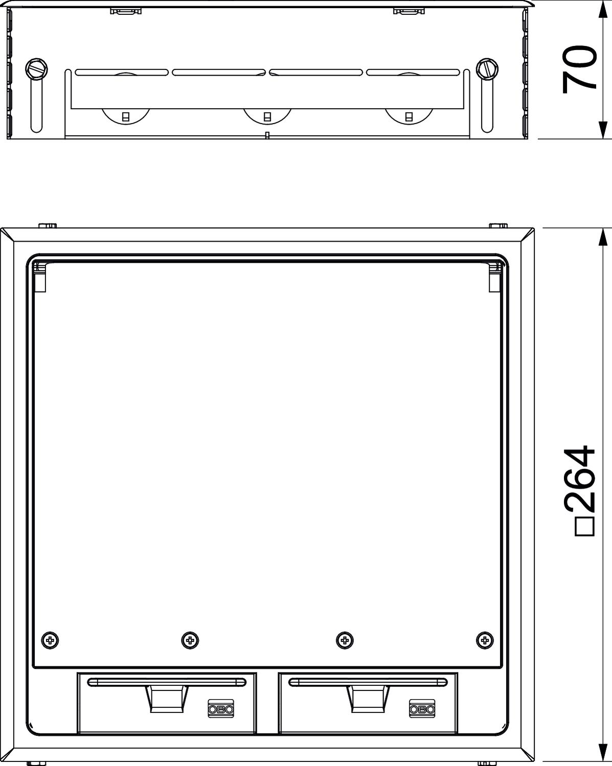 Product descriptionSquare screed socket with GES9 service outlet for use in screed floors for indoor use. With pre-marked insertion openings for pipelines (M25) on all four sides.