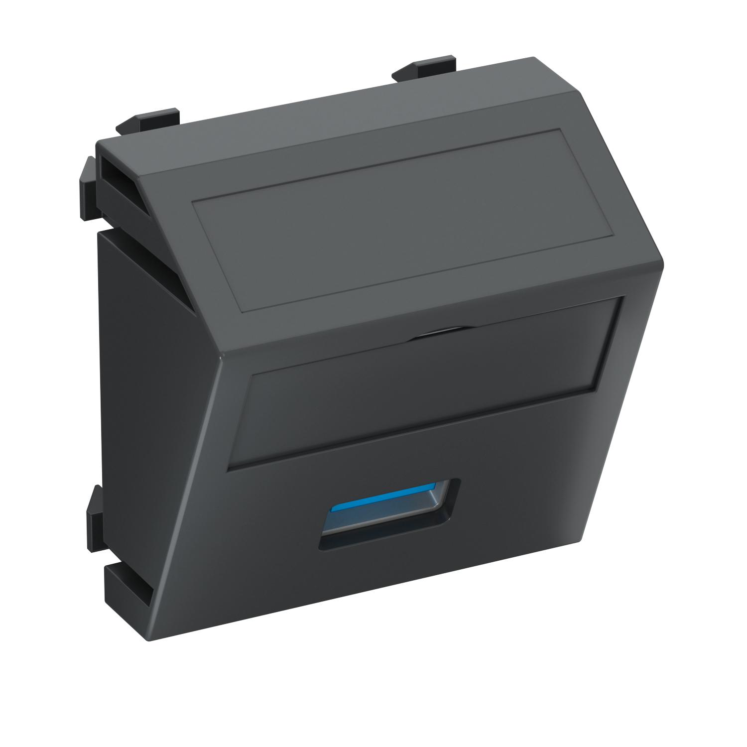 Product descriptionMultimedia support with one USB 3.0 connection socket, slanting cable outlet, with labelling panel, USB 3.0 type A socket with screw connection. Support plate with locking fastening, suitable for horizontal and vertical installation in the system environment.