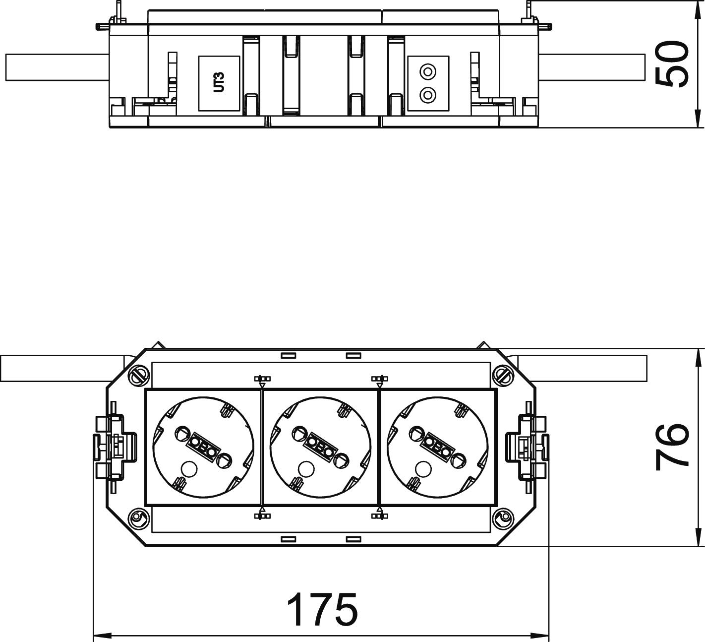 Product descriptionThe ready-for-connection UTC3 universal support possesses 2 pre-installed 33° protective contact sockets in white of 16 A and one pre-installed 33° protective contact socket in orange of 16 A. Suitable for VL connection cables and device installation units of nominal size 2, 4, R4, 6 and R7.