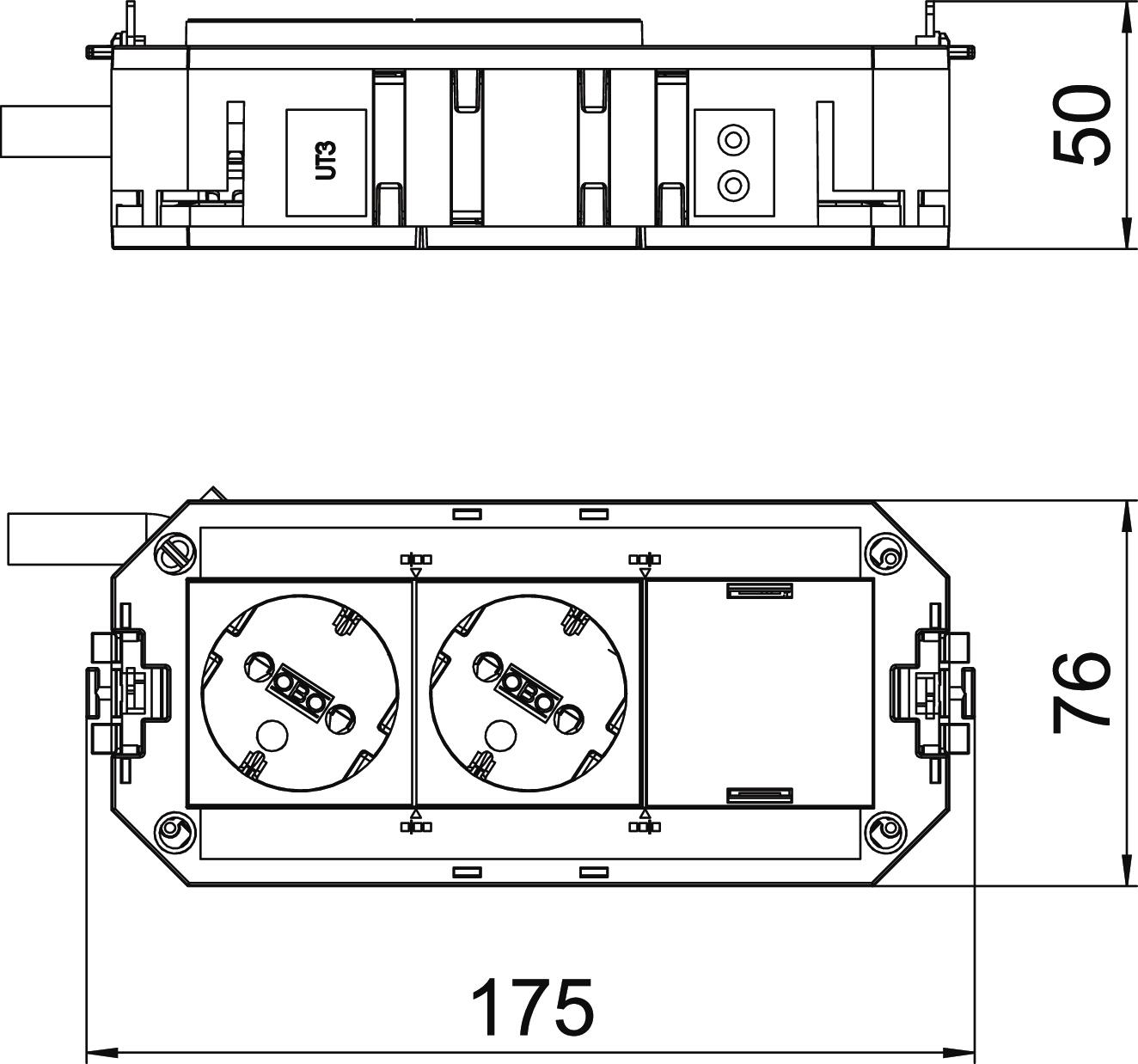 Product descriptionThe ready-for-connection UTC3 universal support has 2 pre-installed 33° protective contact sockets in white of 16 A and one blanking cover for retroinstallation of an installation device of the Modul 45 or Modul 45connect series. Suitable for VL connection cables and device installation units of nominal size 2, 4, R4, 6 and R7.