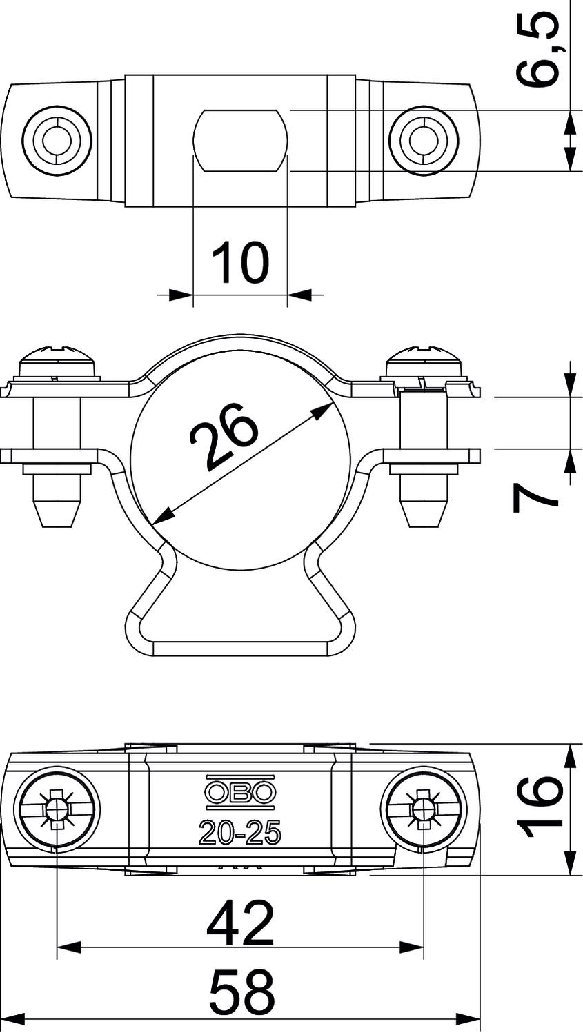 Cable dimensions 26 mm round CO2 Footprint (GWP) Cradle-to-Gate 0,2533 kg CO2e / 1 Piece Dimension Ø26mm Dimension A 58 mm Dimension B 42 mm Dimension d min. 26 mm Dimension H 37 mm Dimension L 7 mm Dimension t 16 mm Fit 26 mm rund mm Length 59 mm Material Stainless steel 1.4301 - All types