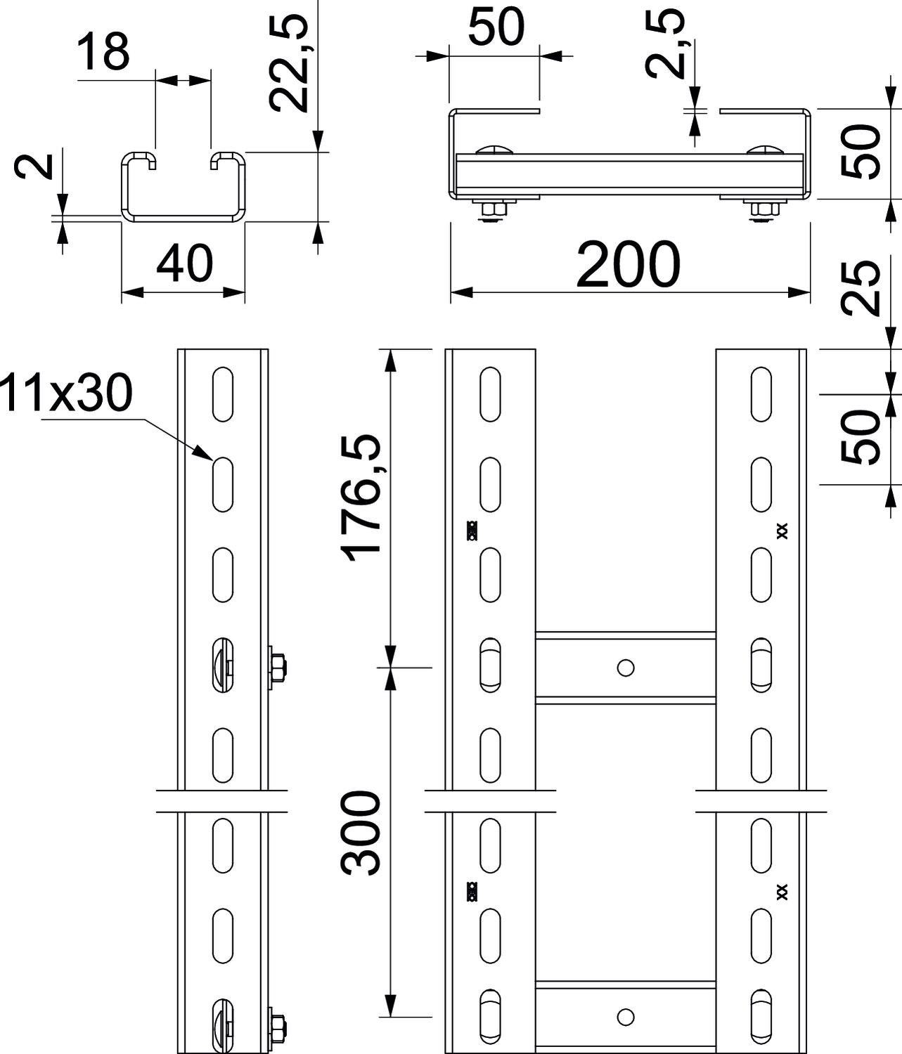 CO2 Footprint (GWP) Cradle-to-Gate 13,7865 kg CO2e / 1 Meter Colour zinc Dimension 200x3000mm Dimension B 200 mm Fire protection Maintenance of electrical function of standard support structure Height 50 mm Length 3000 mm Maintain electrical functions yes Material Steel Rung distance 300 mm Rung slot dimension 2,00 Rustproof steel, pickled no Side perforation yes Surface Hot-dip galvanised Version of the rungs Profile unperforated Width 200 mm - All types