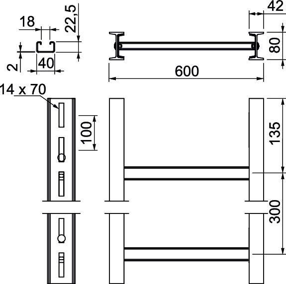 CO2 Footprint (GWP) Cradle-to-Gate 33,5044 kg CO2e / 1 Meter Colour zinc Dimension 600x3000mm Dimension B 600 mm Fire protection Maintenance of electrical function of standard support structure Height 80 mm Length 3000 mm Maintain electrical functions yes Material Steel Rung distance 300 mm Rung slot dimension 2,00 Rustproof steel, pickled no Side perforation yes Surface Hot-dip galvanised Version of the rungs Profile unperforated Width 600 mm - All types