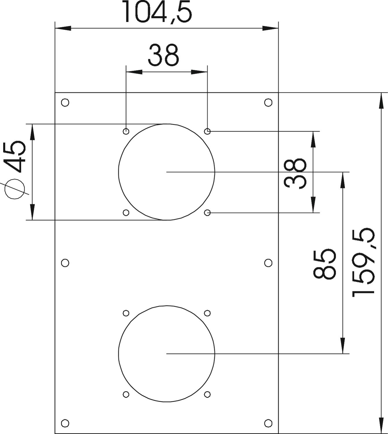Product descriptionCover plate with two Ø 45 mm openings for the installation of two extension sockets (type ASD-...) with 38 mm fastening track, including 8 screws for fastening the device.