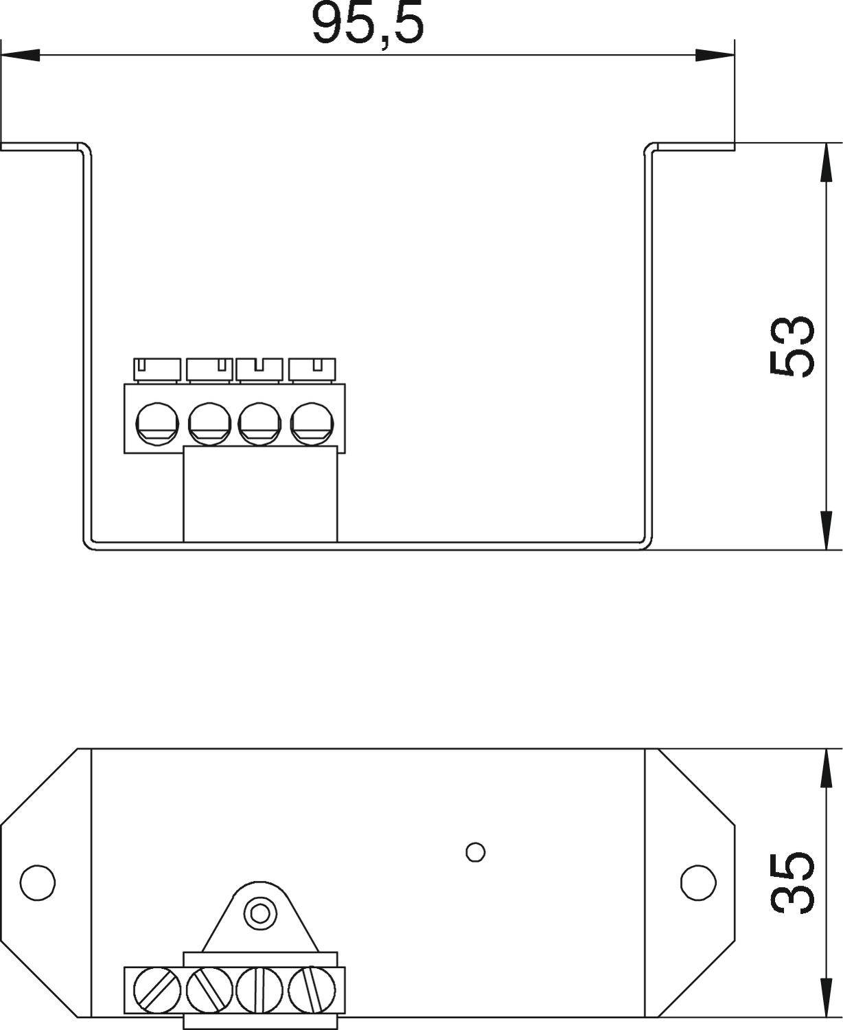 - Base element with hat rail 35 mm and PE terminal strip 4 x 10 mm²