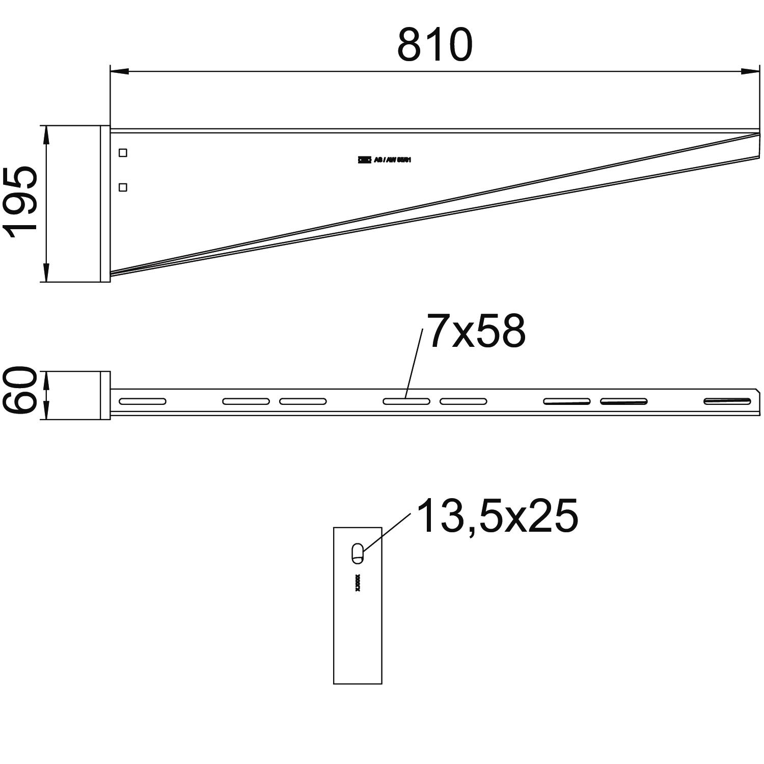 Angle range, max. 90 mm Angle range, min. 90 mm CO2 Footprint (GWP) Cradle-to-Gate 11,6569 kg CO2e / 1 Piece Colour zinc Dimension B810mm Dimension A 60 mm Dimension B 810 mm Dimension H 195 mm F in kN 5,5 kN Height 195 mm Hole diameter 13,5 mm Length 60 mm Maintain electrical functions no Material Steel Rustproof steel, pickled no Surface Hot-dip galvanised Version for Wall and support bracket Width 810 mm Technical data
