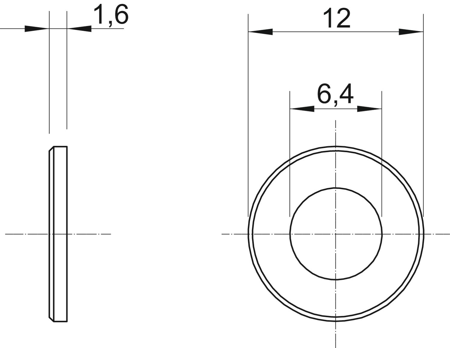 CO2 Footprint (GWP) Cradle-to-Gate 0,0049 kg CO2e / 1 Piece Diameter 12 mm Dimension M6 Dimension d 6,4 mm Dimension d min. 12 mm Dimension h 1,6 mm External diameter 12 mm Hole diameter 6,4 mm Hole shape Round Inner diameter 6,4 mm Material Stainless steel Material thickness 1,6 mm Surface Bright, treated Thread M6 With toothing no - All types