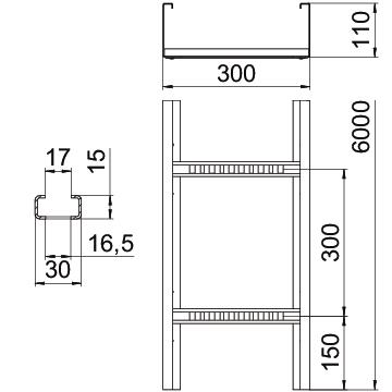 CO2 Footprint (GWP) Cradle-to-Gate 29,4486 kg CO2e / 1 Meter Colour stainless steel Dimension 110x300x6000 Dimension 110x300 Dimension B 300 mm Dimension L 6000 mm Fastening of rung Fully riveted Height 110 mm Length 6000 mm Maintain electrical functions no Material Stainless steel 1.4301 Rail thickness 2 mm Rung slot dimension 17,00 Rustproof steel, pickled no Side perforation yes Side rail version Profile (open) Support spacing 3.0 m 2,3 kN/m Support spacing 3.5 m 1,9 kN/m Support spacing 4.0 m 1,6 kN/m Support spacing 4.5 m 1,33 kN/m Support spacing 5.0 m 1,1 kN/m Support spacing 6.0 m 0,8 kN/m Support spacing 7.0 m 0,4 kN/m Surface Bright, treated Usable cross-section 281 cm² Usable cross-section 28100 mm² Version of the rungs Profile perforated Wide-span version yes Width 300 mm Technical data