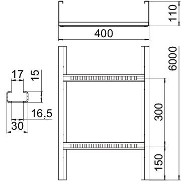 CO2 Footprint (GWP) Cradle-to-Gate 30,6951 kg CO2e / 1 Meter Colour stainless steel Dimension 110x400 Dimension 110x400x6000 Dimension B 400 mm Dimension L 6000 mm Fastening of rung Fully riveted Height 110 mm Length 6000 mm Maintain electrical functions no Material Stainless steel 1.4301 Rail thickness 2 mm Rung slot dimension 17,00 Rustproof steel, pickled no Side perforation yes Side rail version Profile (open) Support spacing 3.0 m 2,3 kN/m Support spacing 3.5 m 2,25 kN/m Support spacing 4.0 m 2,1 kN/m Support spacing 4.5 m 1,83 kN/m Support spacing 5.0 m 1,5 kN/m Support spacing 6.0 m 1 kN/m Support spacing 7.0 m 0,7 kN/m Surface Bright, treated Usable cross-section 37600 mm² Usable cross-section 376 cm² Version of the rungs Profile perforated Wide-span version yes Width 400 mm Technical data