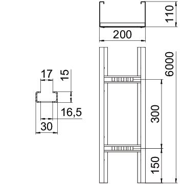 Product descriptionWide span cable ladder with perforated side rails of side height of 110 mm. Fastening of cables with clamp clip, type 2056.