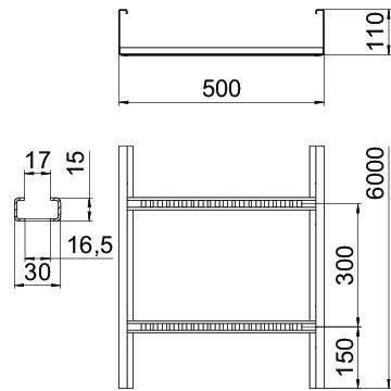 CO2 Footprint (GWP) Cradle-to-Gate 32,0228 kg CO2e / 1 Meter Colour stainless steel Dimension 110x500x6000 Dimension B 500 mm Dimension L 6000 mm Fastening of rung Fully riveted Height 110 mm Length 6000 mm Maintain electrical functions no Material Stainless steel 1.4571 Rail thickness 2 mm Rung slot dimension 17,00 Rustproof steel, pickled no Side perforation yes Side rail version Profile (open) Support spacing 3.0 m 2,3 kN/m Support spacing 3.5 m 1,9 kN/m Support spacing 4.0 m 1,6 kN/m Support spacing 4.5 m 1,33 kN/m Support spacing 5.0 m 1,1 kN/m Support spacing 6.0 m 0,8 kN/m Support spacing 7.0 m 0,4 kN/m Surface Bright, treated Usable cross-section 471 cm² Usable cross-section 47100 mm² Version of the rungs Profile perforated Wide-span version yes Width 500 mm Technical data