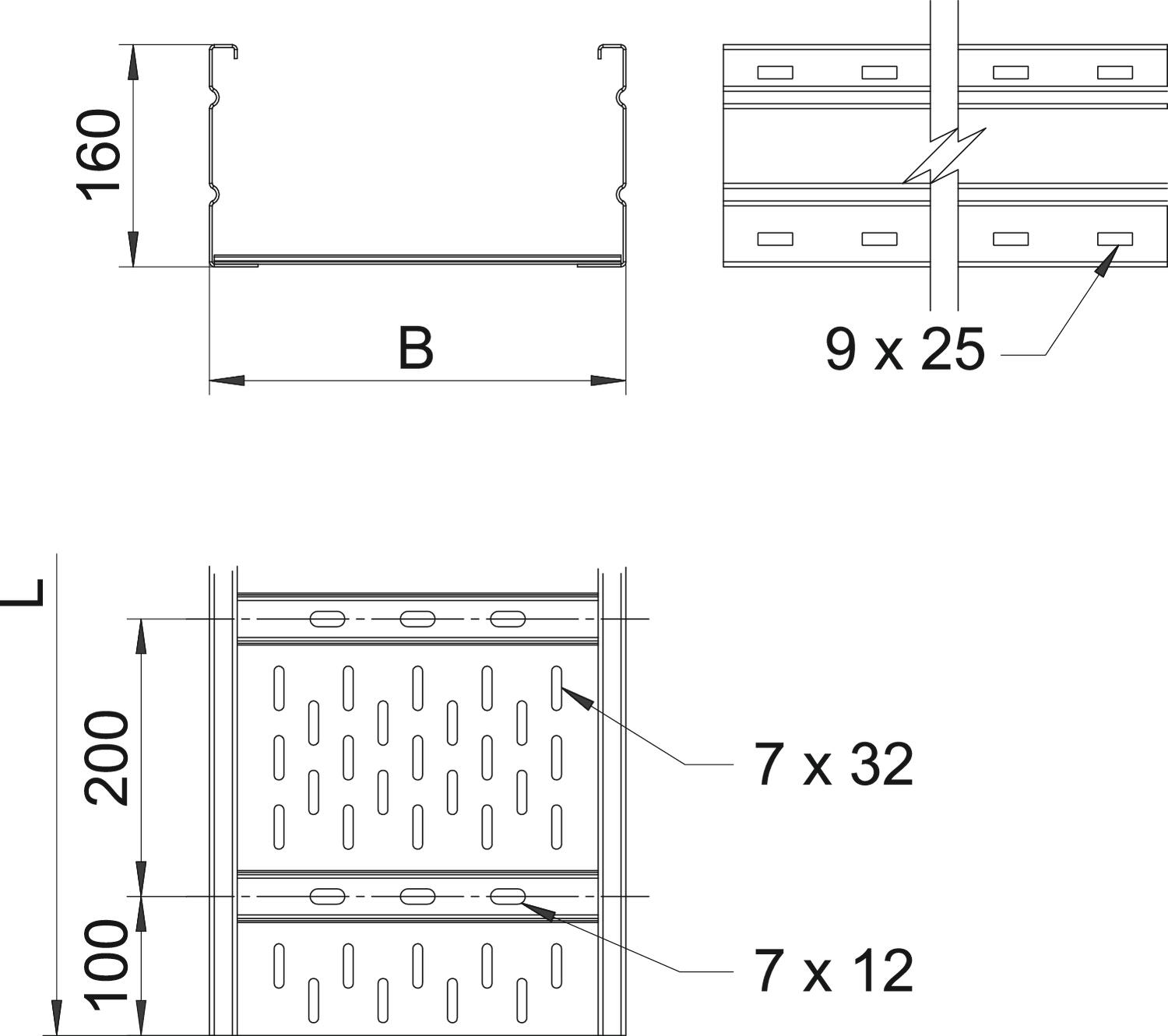Product descriptionWide span cable tray system, perforated, with a side height of 160 mm.