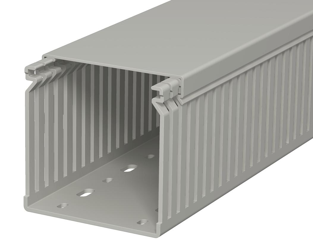 Product descriptionWiring duct, incl. cover and base perforation, for horizontal and vertical routing of electrical cables in the switchgear cabinet. Designed as a metric duct. The nominal dimension of the system size corresponds to the internal dimension of the duct. Retainers are broken out without tools. The flush-floor routing of cables is possible through predetermined break points. Tested to DIN EN 50085-2-3. Special lengths on request.