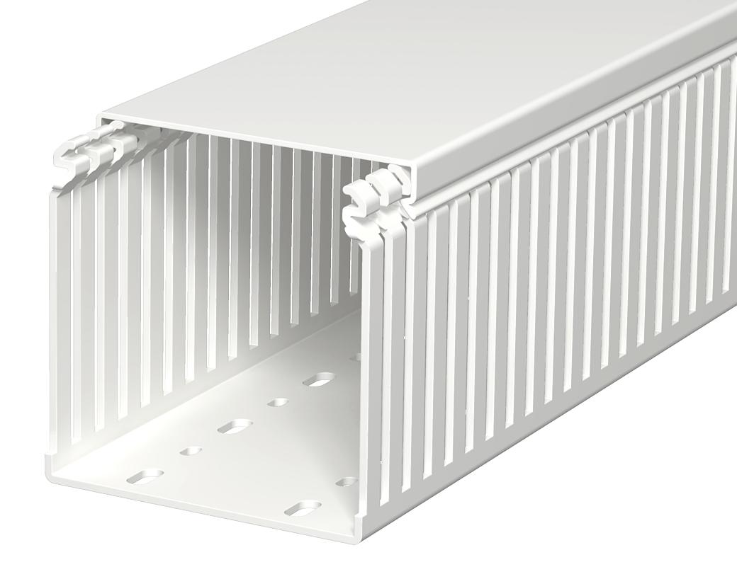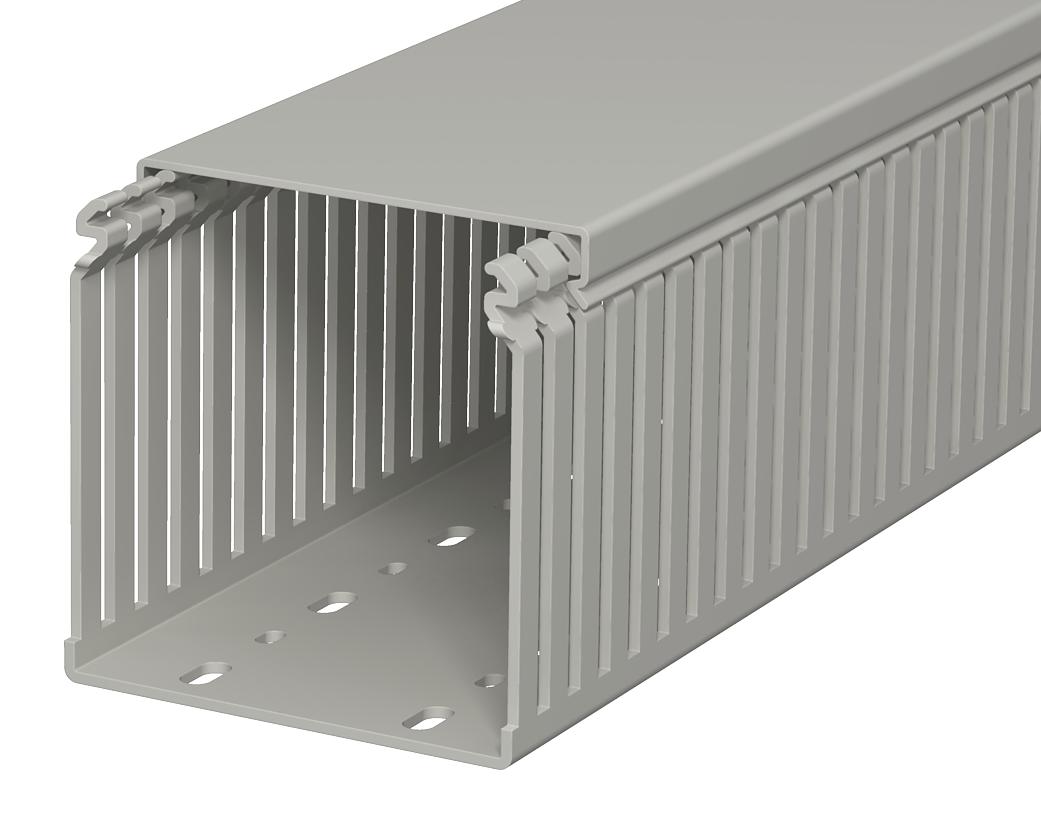 Product descriptionWiring duct according to DIN EN 50085-2-3, incl. cover and base perforation, for horizontal and vertical routing of electrical cables in the switchgear cabinet. Designed as a DIN duct. Retainers are broken out without tools. The flush-floor routing of cables is possible through predetermined break points. Tested to DIN EN 50085-2-3. Special lengths on request.