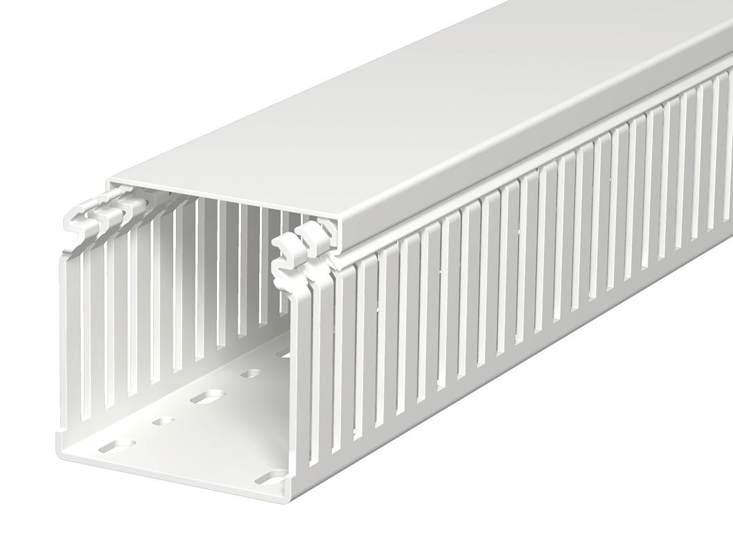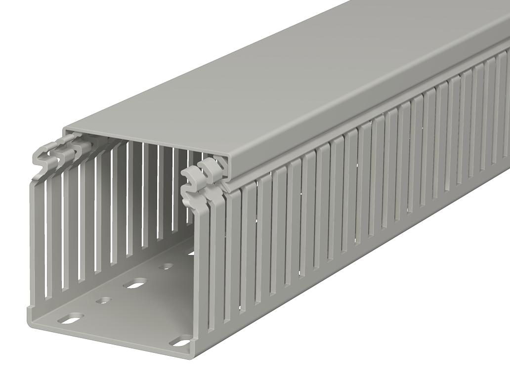 Product descriptionWiring duct according to DIN EN 50085-2-3, incl. cover and base perforation, for horizontal and vertical routing of electrical cables in the switchgear cabinet. Designed as a DIN duct. Retainers are broken out without tools. The flush-floor routing of cables is possible through predetermined break points. Tested to DIN EN 50085-2-3. Special lengths on request.
